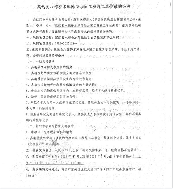 威遠(yuǎn)縣八棟橋水庫除險(xiǎn)加固工程施工單位采購公告