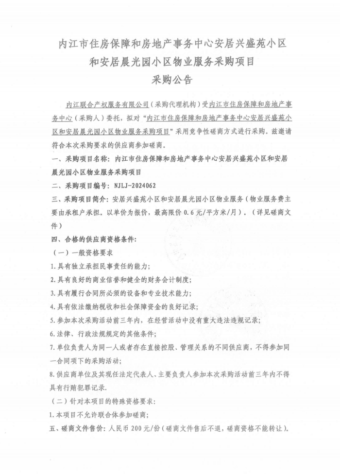 安居興盛苑、安居晨光園保障性住房小區(qū)物業(yè)服務(wù)采購(gòu)項(xiàng)目采購(gòu)公告