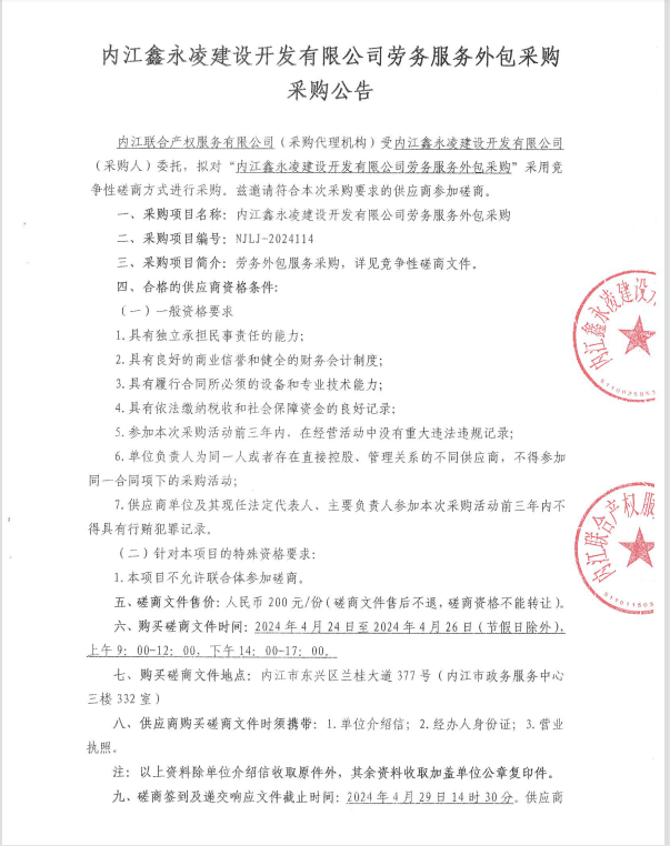 內(nèi)江鑫永凌建設(shè)開(kāi)發(fā)有限公司勞務(wù)服務(wù)外包采購(gòu)采購(gòu)公告