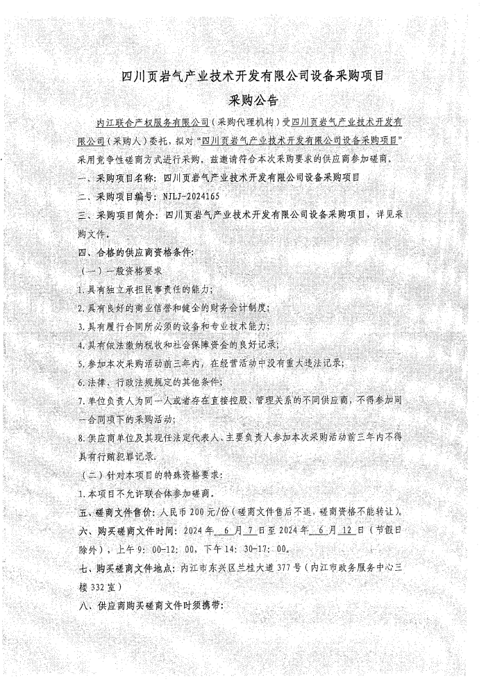 四川頁巖氣產(chǎn)業(yè)技術(shù)開發(fā)有限公司設(shè)備采購(gòu)項(xiàng)目采購(gòu)公告