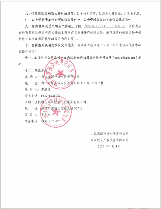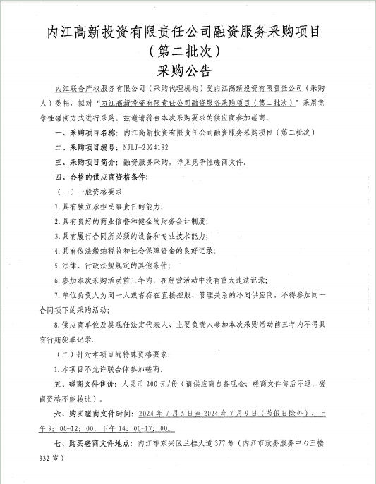內(nèi)江高新投資有限責(zé)任公司融資服務(wù)采購項目(第二批次)采購公告