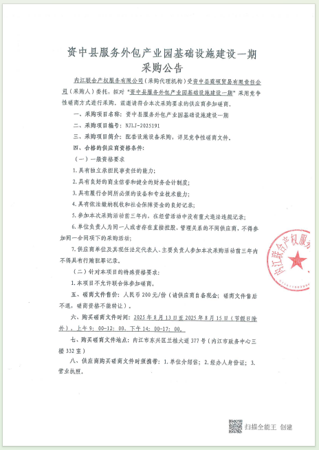 資中縣服務(wù)外包產(chǎn)業(yè)園基礎(chǔ)設(shè)施建設(shè)一期采購項(xiàng)目