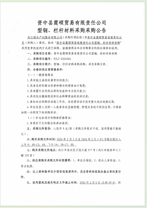 資中縣霆碩貿易有限責任公司型鋼、欄桿材料采購