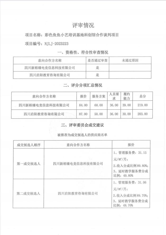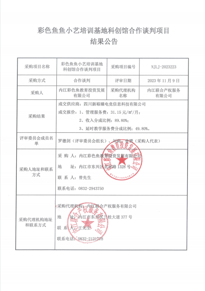 彩色魚魚小藝培訓基地科創(chuàng)館合作談判項目結(jié)果公告
