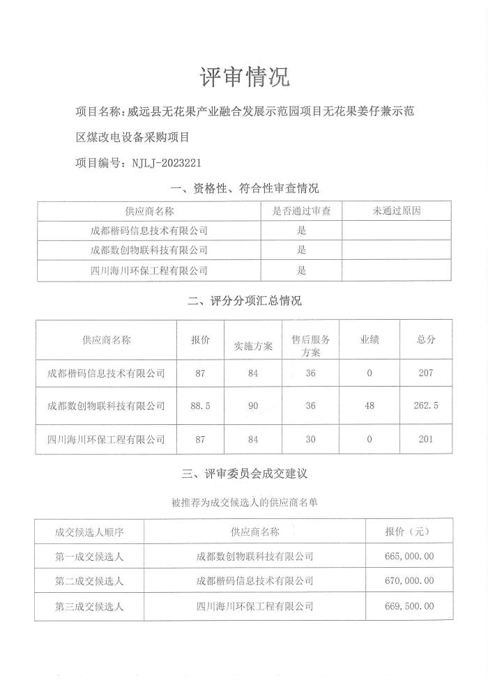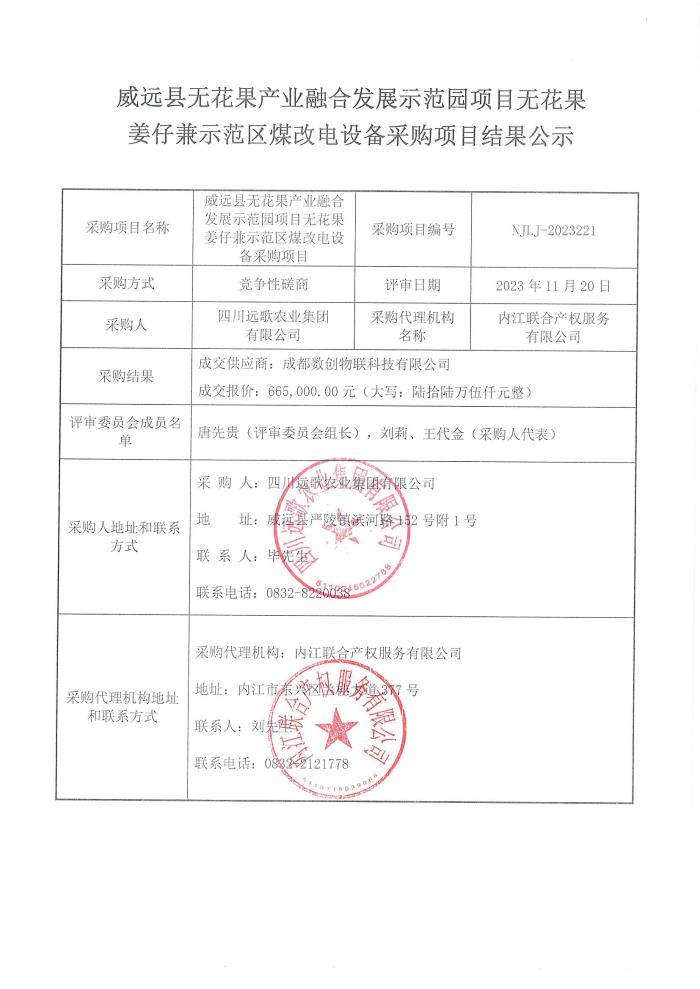 威遠(yuǎn)縣無花果產(chǎn)業(yè)融合發(fā)展示范園項目無花果姜仔兼示范區(qū)煤改電設(shè)備采購項目結(jié)果公示