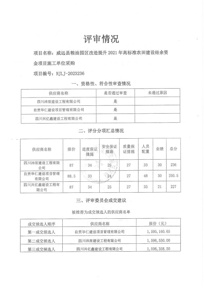 威遠(yuǎn)縣糧油園區(qū)改造提升2021年高標(biāo)準(zhǔn)農(nóng)田建設(shè)結(jié)余資金項(xiàng)目施工單位結(jié)果公示