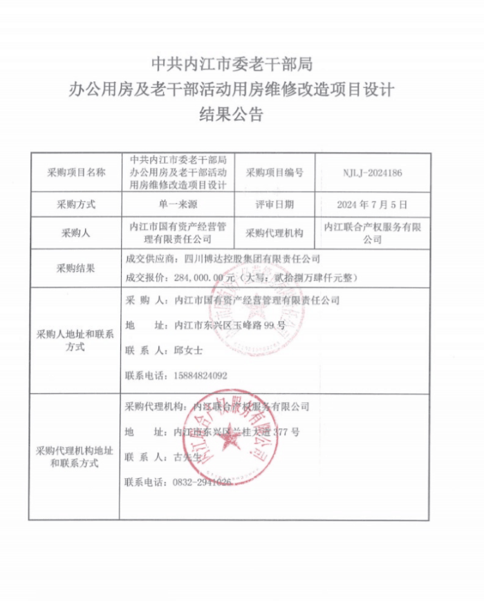 中共內(nèi)江市委老干部局辦公用房及老干部活動(dòng)用房維修改造項(xiàng)目設(shè)計(jì)結(jié)果公告
