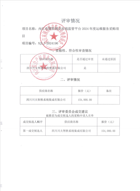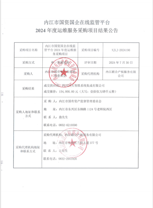 內(nèi)江市國資國企在線監(jiān)管平臺2024年度運維服務(wù)采購項目結(jié)果公告