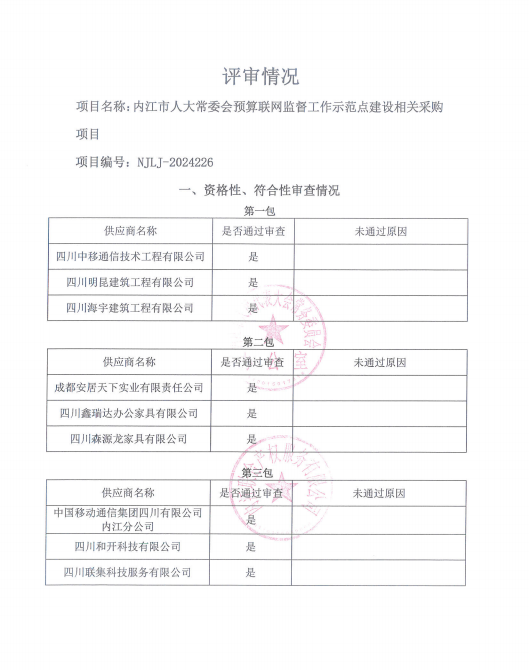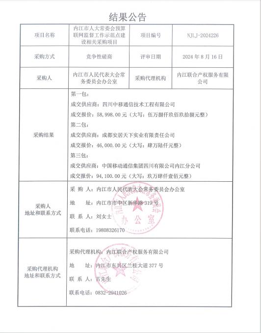 內(nèi)江市人大常委會(huì)預(yù)算聯(lián)網(wǎng)監(jiān)督工作示范點(diǎn)建設(shè)相關(guān)采購(gòu)項(xiàng)目結(jié)果公告