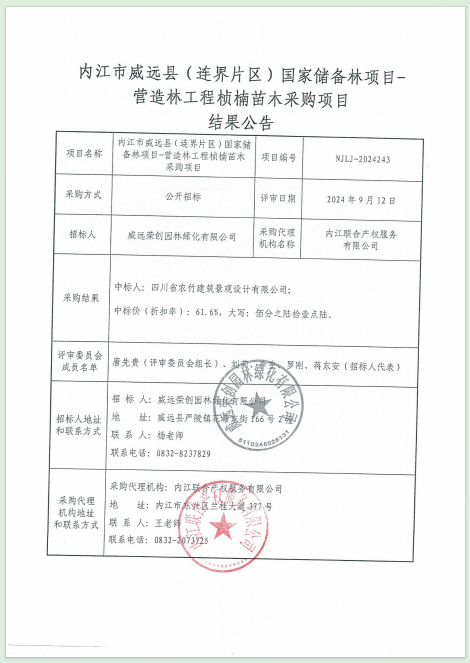 內(nèi)江市威遠(yuǎn)縣(連界片區(qū))國家儲備林項目-營造林工程楨楠苗木采購項目結(jié)果公告