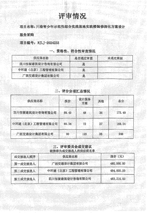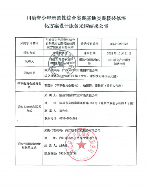 川渝青少年示范性綜合實踐基地實踐樓裝修深化方案設(shè)計服務(wù)采購結(jié)果公告