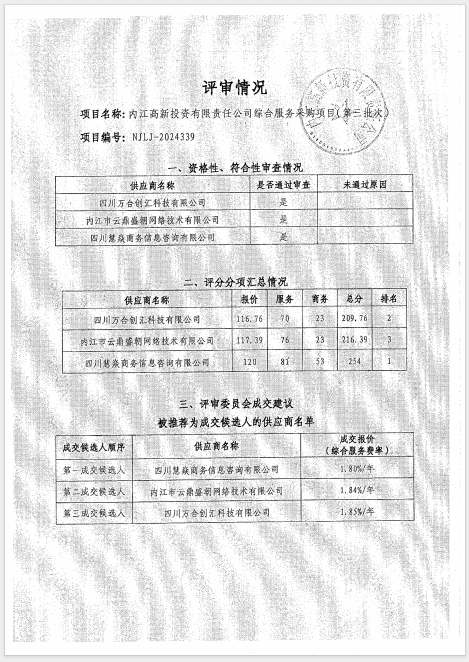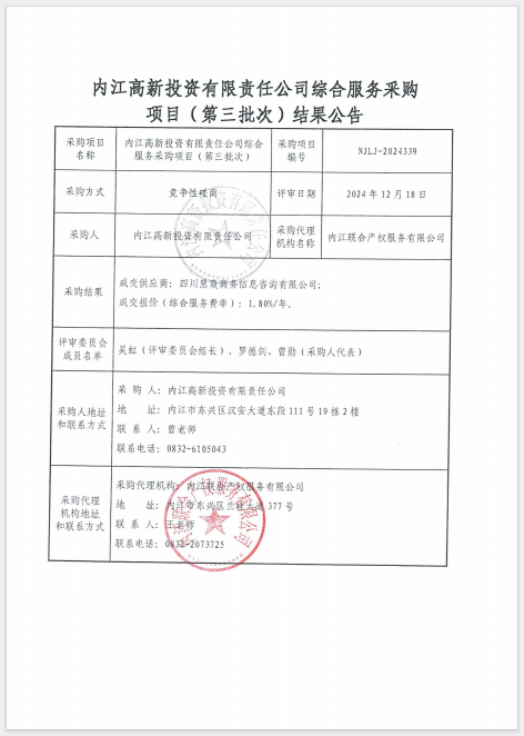 內(nèi)江高新投資有限責任公司綜合服務(wù)采購項目(第三批次)結(jié)果公告
