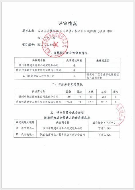 威遠(yuǎn)縣采煤沉陷區(qū)連界鎮(zhèn)石板河社區(qū)避險(xiǎn)搬遷項(xiàng)目-臨時(shí)施工用電工程結(jié)果公告