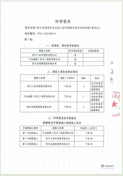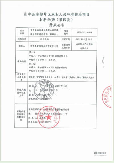 資中縣南部片區(qū)農(nóng)村人居環(huán)境整治項(xiàng)目材料采購(第四次)結(jié)果公告