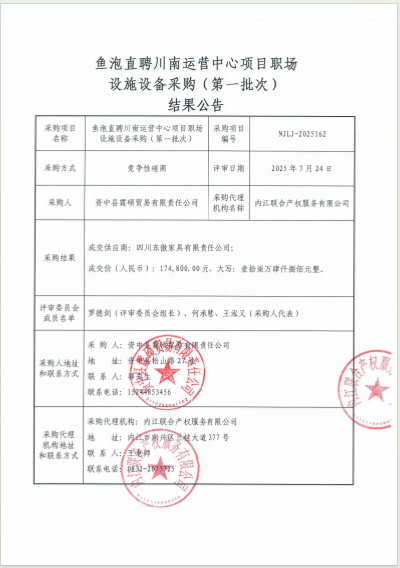 魚泡直聘川南運營中心項目職場設(shè)施設(shè)備采購(第一批次)結(jié)果公告