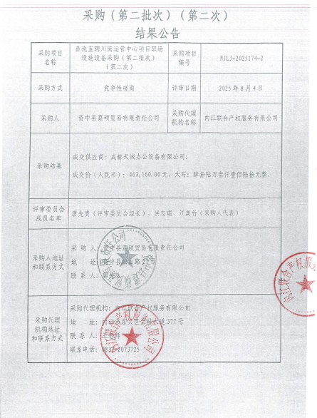 魚(yú)泡直聘川南運(yùn)營(yíng)中心項(xiàng)目職場(chǎng)設(shè)施設(shè)備采購(gòu)(第二批次)(第二次)結(jié)果公告