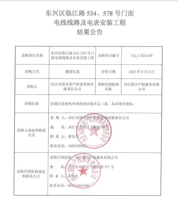 東興區(qū)臨江路534、578號門面電線線路及電表安裝工程結(jié)果公告