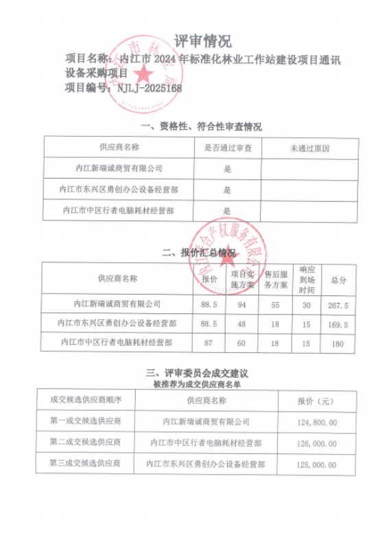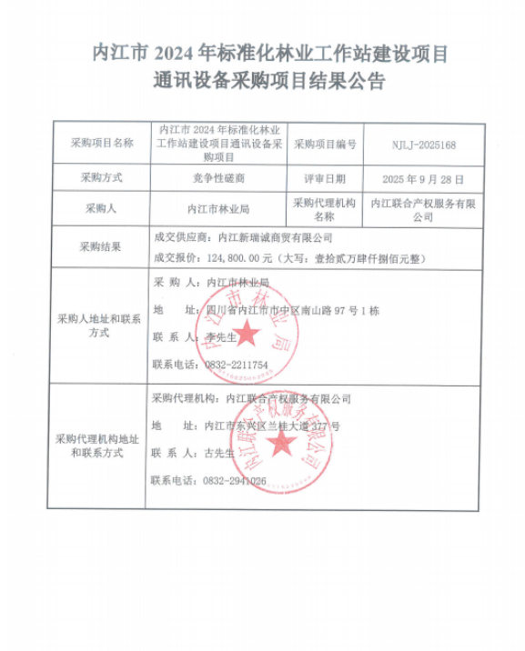 內(nèi)江市2024年標(biāo)準(zhǔn)化林業(yè)工作站建設(shè)項(xiàng)目通訊設(shè)備采購項(xiàng)目結(jié)果公告