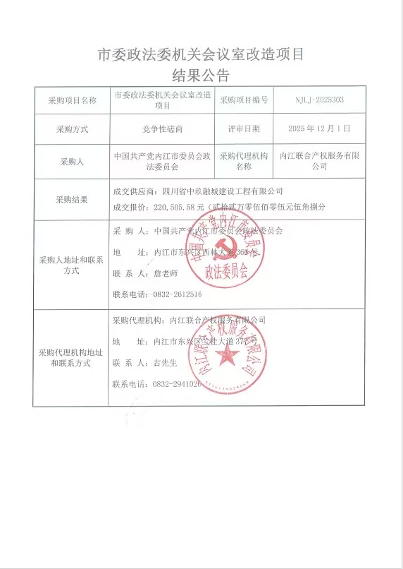 市委政法委機關會議室改造項目結果公告